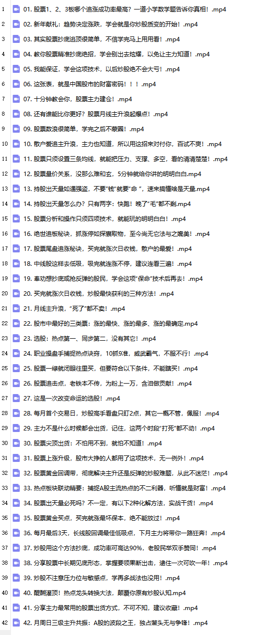 ├──41. 分享主力最常用的股票出货方式,不可不知,建议收藏!.mp4 16.78M